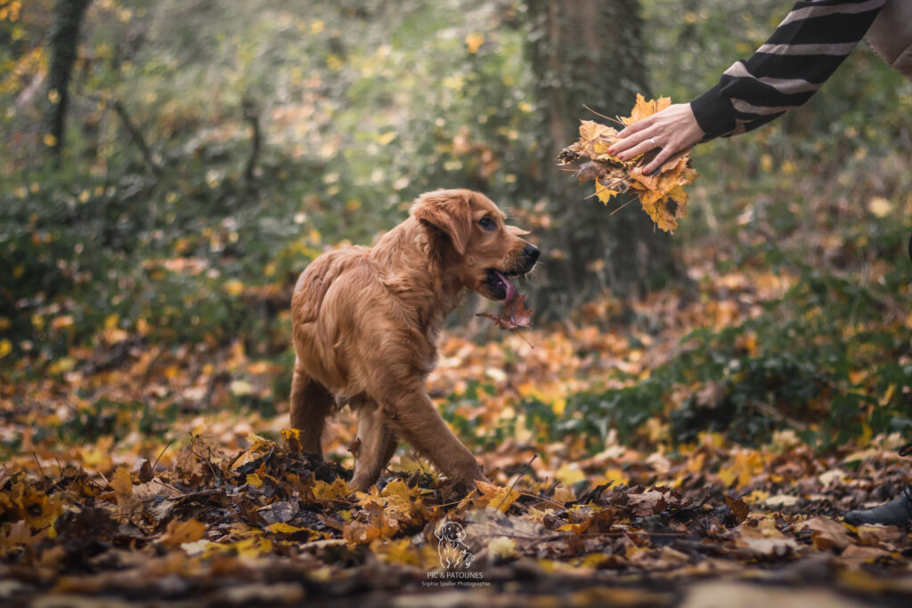 Alors effectivement, on va faire moins de photos posées mais si vous connaissez mon travail, vous savez que je n’en fais de toute manière pas beaucoup. Cependant, il y a certaines situations où c’est nécessaire et notamment pour les photos de famille. Mais là encore, il y a toujours l’astuce de la friandise pour attirer l’attention du chiot quelques instants. Puis entre nous, c’est une astuce utilisée aussi pour les adultes qui ont la bougeotte. Croyez-moi, ils sont nombreux !