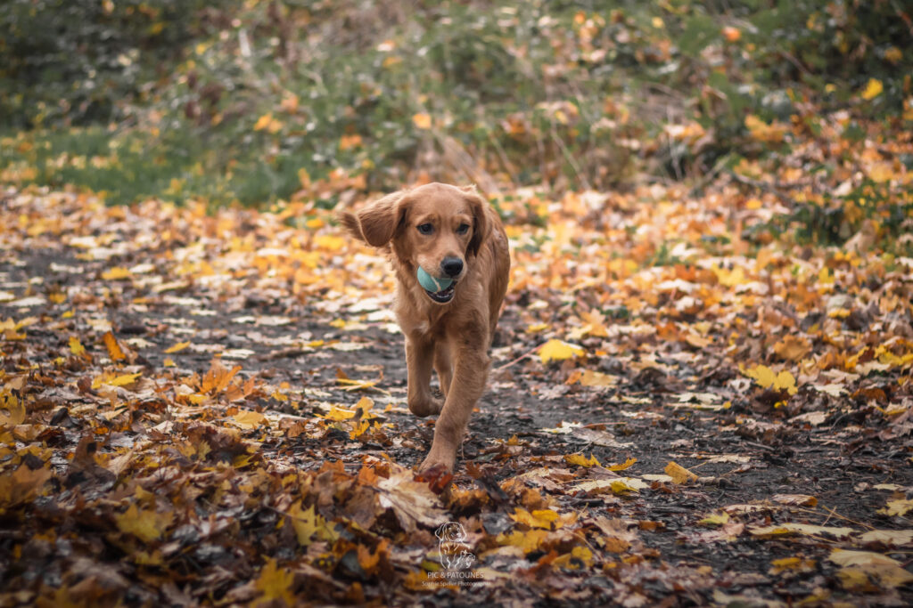En novembre dernier, j’ai rencontré le petit Kuma, un jeune golden alors âgé de 6 mois. Avec sa belle robe fauve orangé, ses humains se sont dit qu’une séance aux couleurs de l’automne serait idéale pour immortaliser sa bouille de chiot. Sur mes conseils, nous avons décidé de faire cette séance au Gour de Tazenat. En effet, mi-novembre, les feuilles sont déjà bien au sol et je savais qu’on pourrait avoir un beau tapis de feuilles sur le chemin. Quel chiot n’aime pas fouiller et se rouler dans les feuilles ?
